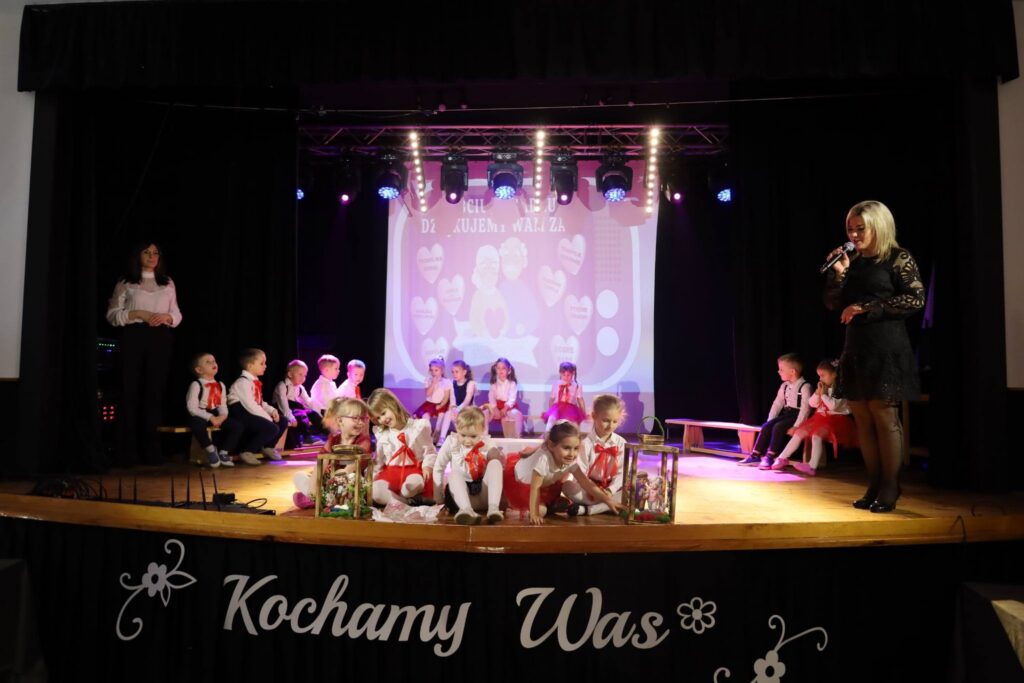 Występ uświetniły piękne piosenki oraz taniec przygotowany specjalnie dla ukochanych Babć i Dziadków Na zakończenie dzieci złożyły serdeczne życzenia, odśpiewały tradycyjne „Sto lat”, a następnie wręczyły swoim dziadkom własnoręcznie przygotowane upominki Po części artystycznej wykonano również pamiątkowe zdjęcie, które na długo przypomni ten wyjątkowy dzień