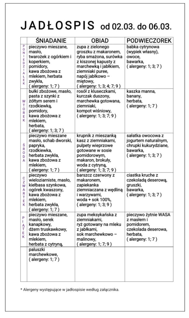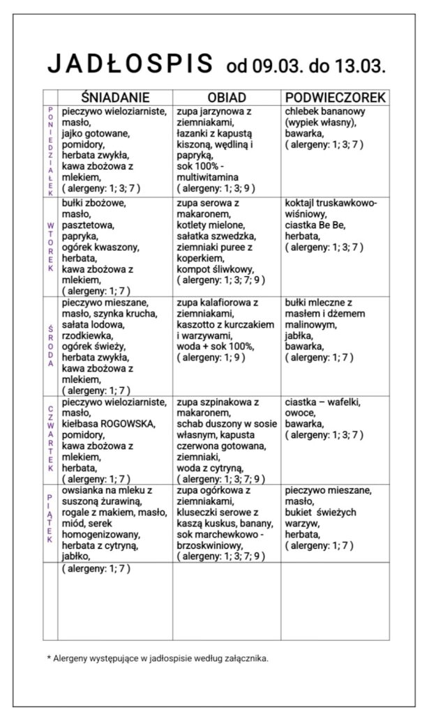 JADŁOSPIS od 13.03. do 17.03.