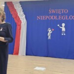 Cała społeczność przedszkolna zebrała się, aby uroczyście świętować ten wyjątkowy dla nas – Polaków dzień. Wszyscy z powagą i w dużym skupieniu oglądali program artystyczny przygotowany przez dzieci z grup „Krasnoludki”, „Sówki”, „Wiewiórki” oraz” Skrzaty”. Podczas występu dzieci recytowały wiersze patriotyczne opowiadające o historii Polski