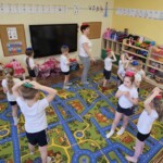 Poprzez zabawy i ćwiczenia ruchowe, dzieci pokonują trudności dzięki czemu wzmacniają wiarę we własne możliwości. Szeroki wachlarz gier i zabaw ruchowych, dostosowanych do wieku dziecka, umożliwia dzieciom przyjemne spędzenie czasu i pozwala na rozwój wzajemnych kontaktów rówieśniczych. Dlatego w naszym Przedszkolu zajęcia gimnastyczne odbywają się dla dzieci w każdej grupie. Nasze panie nauczycielki, dbają o to, aby zajęcia te były atrakcyjne.??