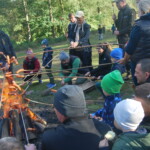 W sobotę 18 października przedszkolacy wraz z rodzinami oraz wychowawcami i Panią Dyrektor udali się na” Ścieżkę Edukacyjną Rzeki Gąsawki” w Oćwiece. Na miejscu czekał już na przybyłych leśniczy Pan Michał Zwolenkiewicz. Opowiedział on o historii powstania ścieżki, o bogactwie fauny i flory lasu,o właściwym zachowaniu się w lesie. Następnie szlakiem, który ukazał piękno lasu, jeziora, a także powitał nas ciszą przeszliśmy do miejsca docelowego. Tam każdy z przybyłych mógł upiec sobie kiełbaskę, posiedzieć na kocu,wziąść udział w zabawach i grach.