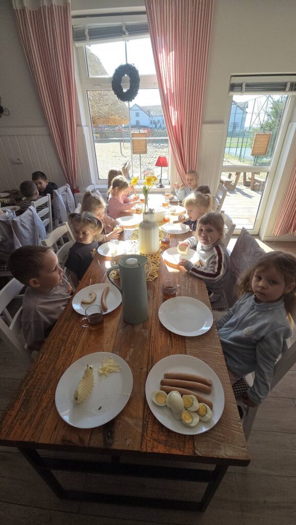 Zwieńczeniem ich pracy było spotkanie na wielkanocnym śniadanku. Oprócz jajek, kiełbaski znalazły się także baranki z masła oraz mazurki. Wszystko dzieciom bardzo smakowało.