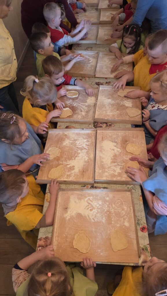 W dniu dzisiejszym dzieci z grupy Smerfy oraz Leśne Duszki wybrały się na warsztaty wielkanocne do Biskupina.
