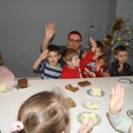 Dnia 1 kwietnia 2022 roku dzieci z grupy Skrzaty i Leśne Duszki udały się na wycieczkę do ośrodka wypoczynkowego w Oćwiece. Pomimo niesprzyjającej pogody humory dopisywały. Na wstępie przywitał nas właściciel ośrodka pan Piotr Sobolewski, który na początek zaprosił gości do zapoznania się z tradycjami i zwyczajami wielkanocnymi. Następnie dzieci wykonały własnoręcznie mazurki, które przyozdobiły wg uznania. Potem ubijały masło, z którego zrobiły śliczne baranki. Każde z dzieci miało możliwość wykonania ozdoby świątecznej. Mazurki i ozdoby dzieci zabrały że sobą do domu. Na koniec na wszystkich czekał wielkanocny poczęstunek: Kiełbasa biała i parówka, bigos, sałatka, talerz z serami i wędlinami, żurek z jajkiem i kiełbasą i oczywiście jajka. Wszyscy zmęczeni, ale zadowoleni i uśmiechnięci opuściliśmy gościnne progi ośrodka w Oćwiece.