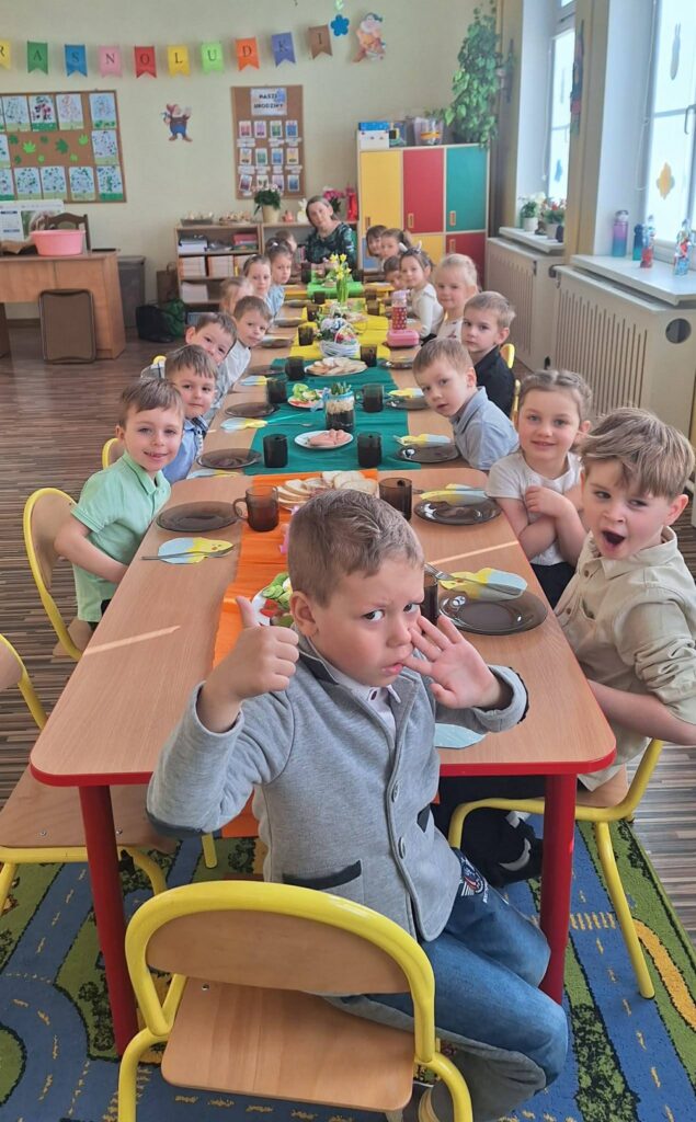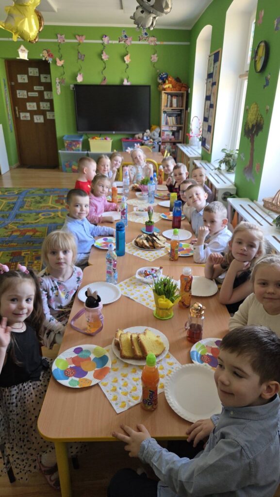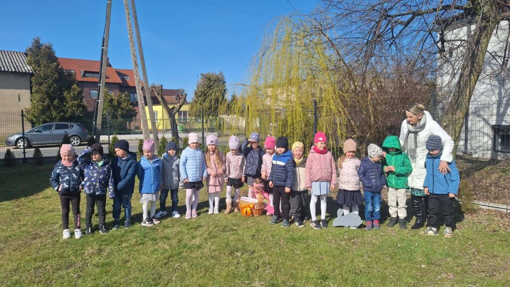 W naszym przedszkolu kicały dziś zajączki. Na początku wpadły na wielkanocne śniadanko. Następnie pobiegły na przedszkolne podwórko ,aby w różnych miejscach schować świąteczne koszyczki z łakociami dla dzieci. Jakby tego było mało przybiegły z powrotem do przedszkola ,aby poczęstować się wielkanocnymi wypiekami. Oczywiście, odbyło to się w bardzo magiczny i tylko zajączkom znany sposób