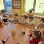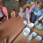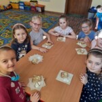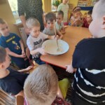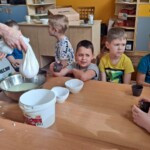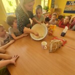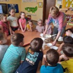 Na zajęciach dzieci upiekły chleb oraz z pomocą pani Ani przygotowały prawdziwy wiejski biały ser. Przedszkolacy byłyli zachwyceni, gdy mogli w końcu ich skoszkować