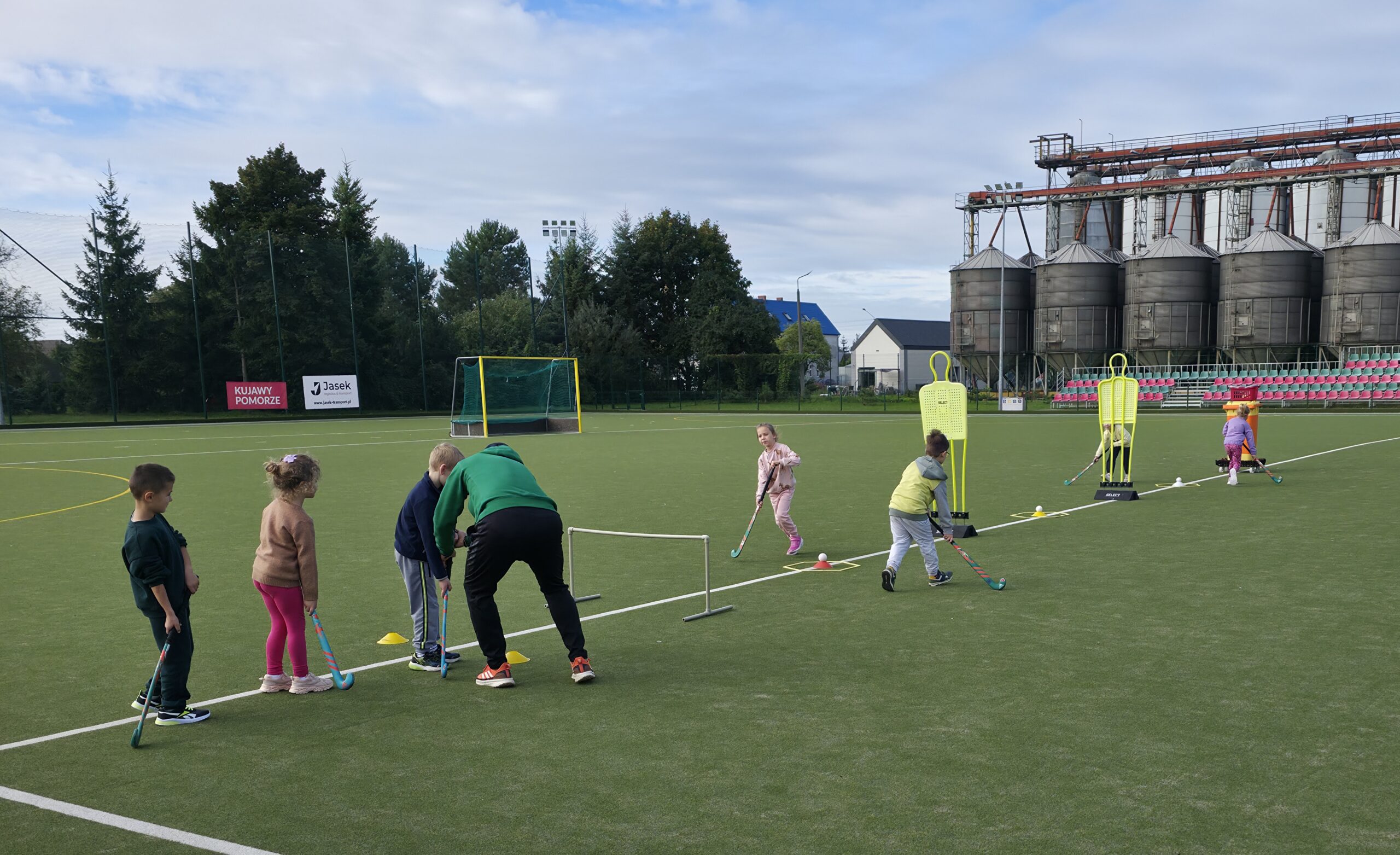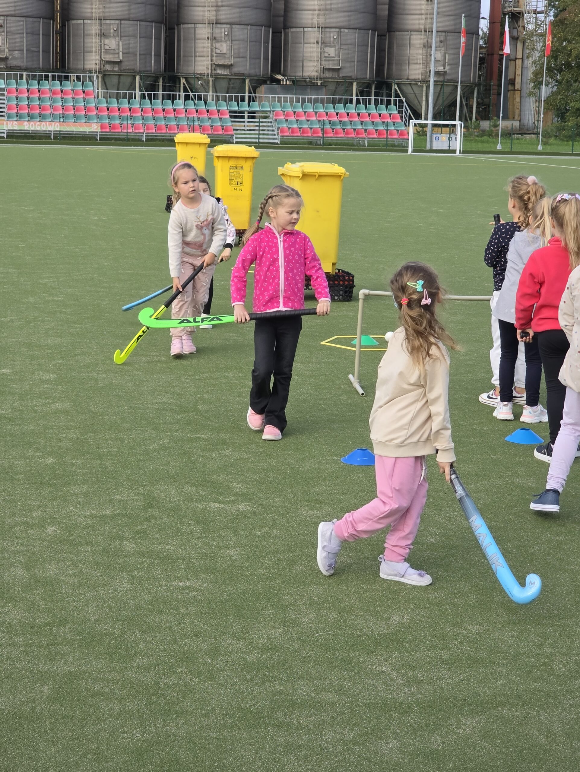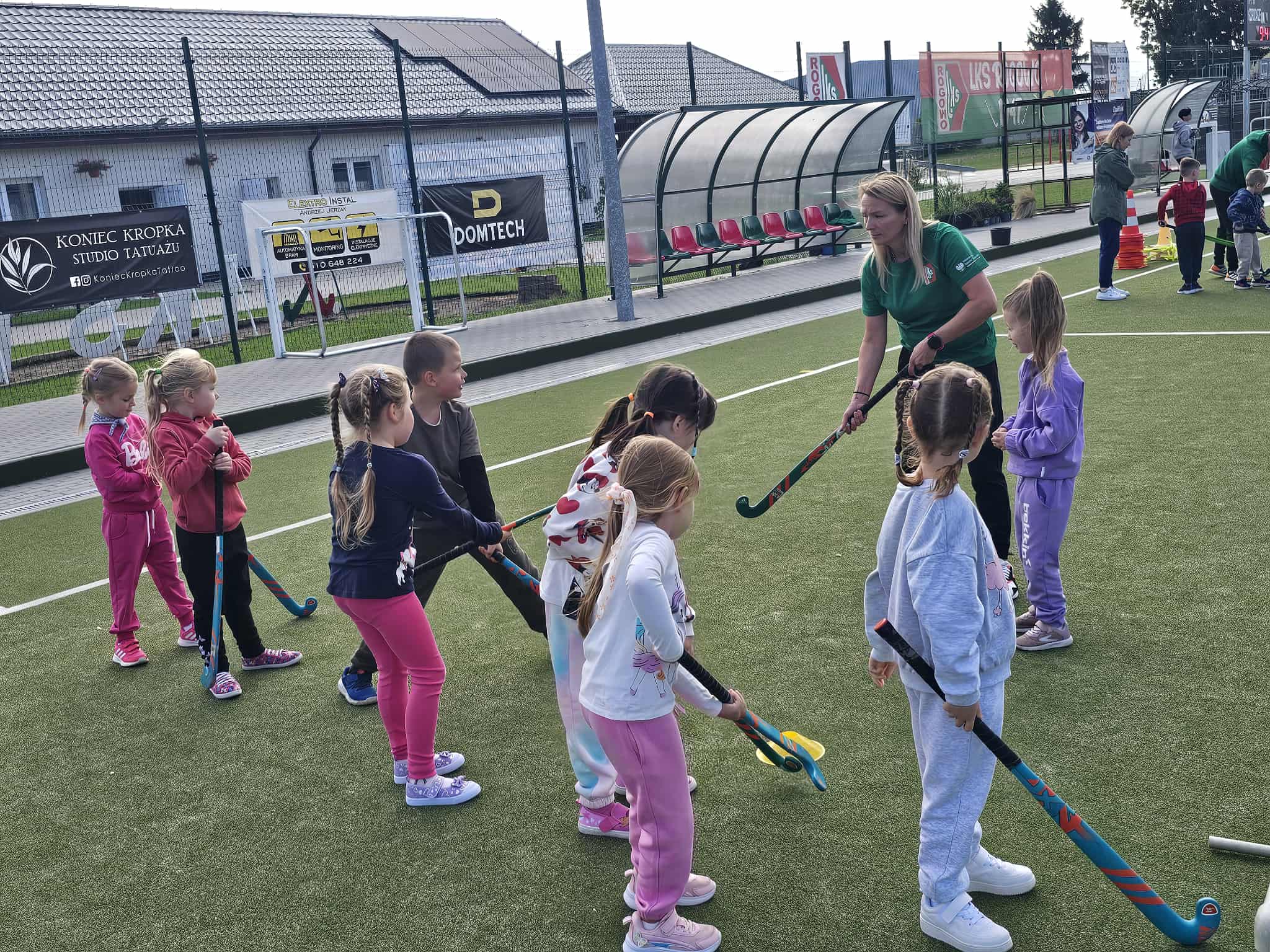 👉 Potem przyszedł czas na podział na drużyny i pierwsze zabawy z kijami oraz piłeczkami.