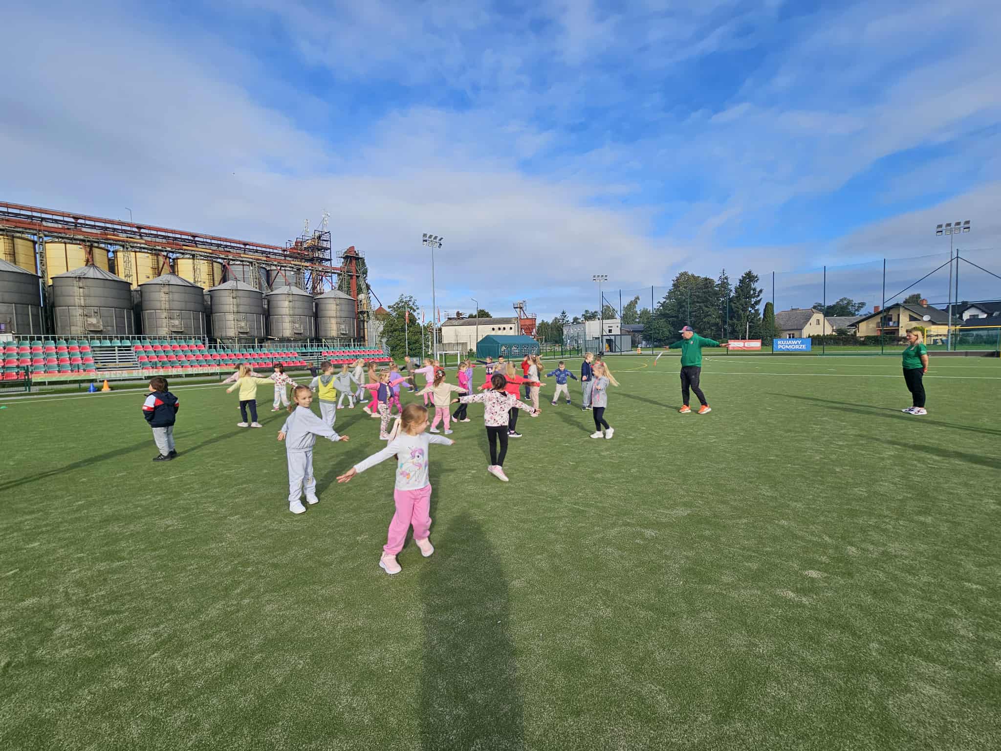 👉 Zaczęliśmy od wspólnej rozgrzewki, która rozruszała małych sportowców i dodała im energii.